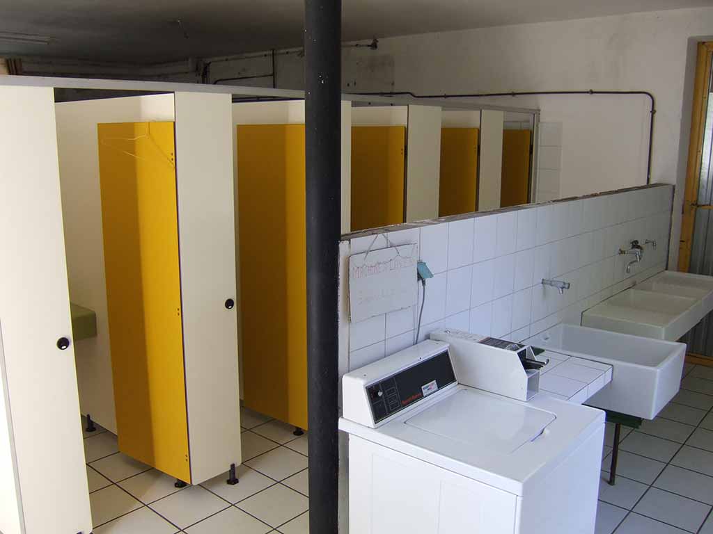 Sanitaires : 2 blocs sanitaires dont un avec une cabine adaptée pour PMR et une machine à laver le linge à jetons.